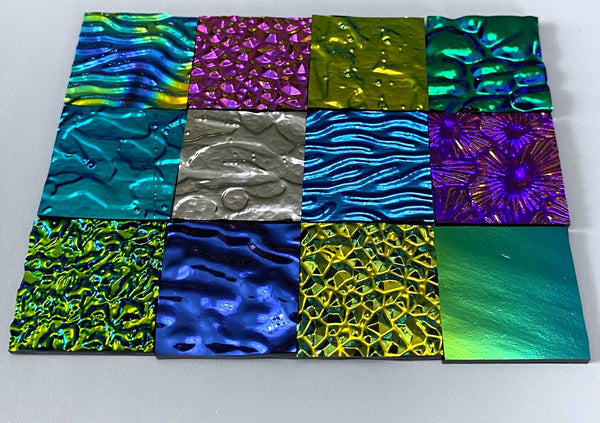 These assortments are a great way to try a lot of different colors and textures. Dichroic glasses are a mix of both thin (2mm) and regular (3mm) thickness.