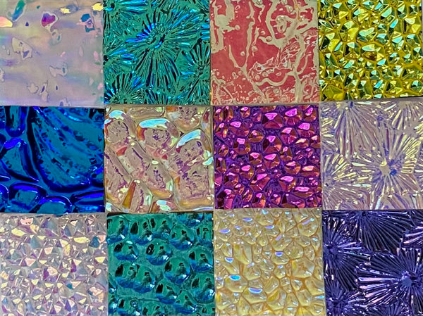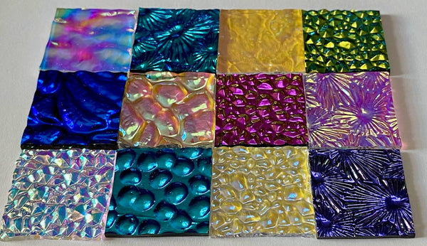 These assortments are a great way to try a lot of different colors and textures. Dichroic glasses are a mix of both thin (2mm) and regular (3mm) thickness.