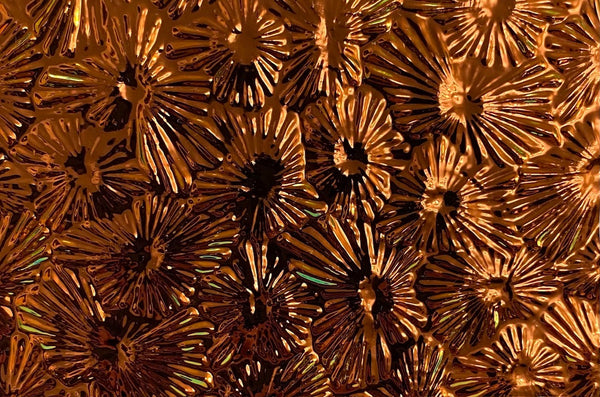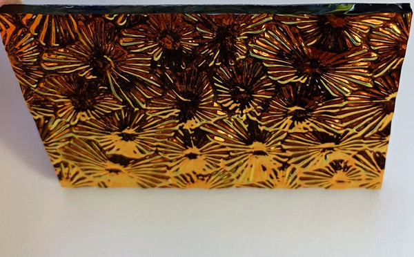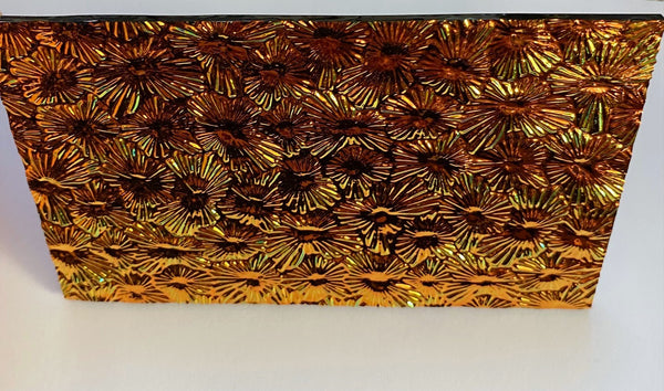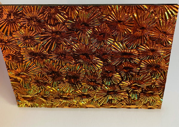 This listing is for a beautiful black 3mm Salmon 90 coe 'Florentine' dichroic fusible glass with the CBS coating. Wonderful colors in copper, green and more! The Wissmach florentine is a wonderful 'starburst' texture. Fires beautifully.