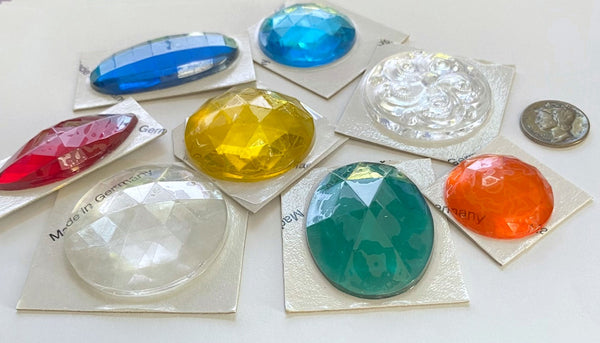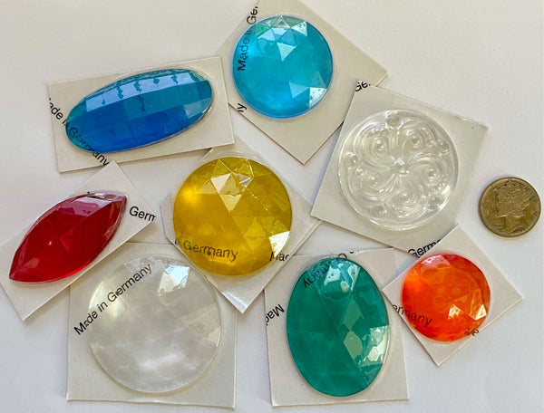 This listing is for a beautiful selection of larger sized stained-glass jewels in an array of colors and sizes. Imported from Germany, these flat backed jewels are for use in stained glass panels, lampshades, sun catchers and more.