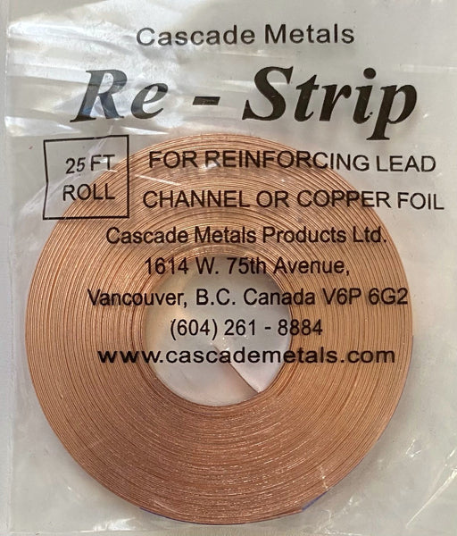 Working on a larger size panel and need reinforcement? Cascade Metals re-strip is amazing and adds strength and rigidity to any large piece. Works on both lead channels and copper foil.
